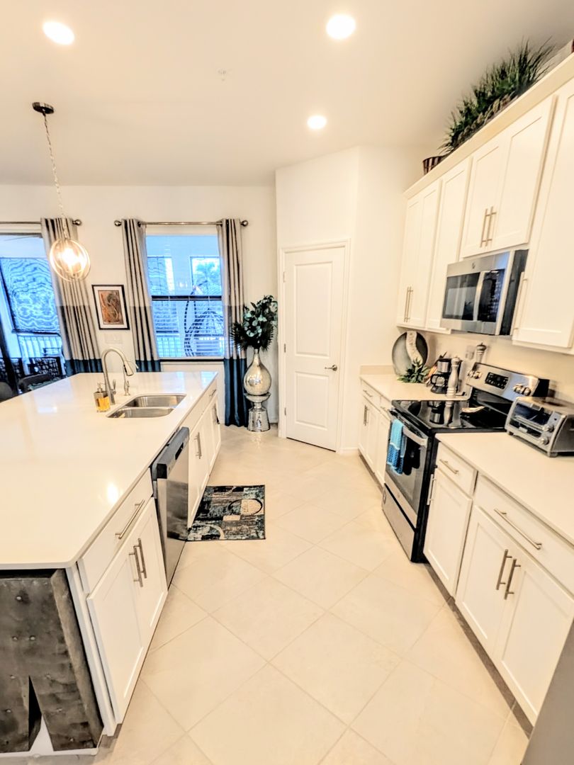 This spacious open floor plan features the main living area upstairs and a lower-level 2-car garage with extra storage. This 3-bedroom, 2-bath home is beautifully furnished with modern décor throughout. The kitchen offers solid quartz countertops, new stainless steel appliances, a breakfast bar, a large pantry, and solid wood cabinetry. The open layout makes entertaining a breeze, especially with the screened-in lanai overlooking the pond. Tile flooring runs throughout the common living areas, while the bedrooms are carpeted for comfort. The primary bedroom is tastefully decorated and includes direct access to the lanai, two large walk-in closets, and an en-suite bathroom with dual vanities and a walk-in shower. One guest bedroom is fully furnished, while the second is currently used as a dressing room but can easily be converted back to a bedroom. The Montserrat community offers a pool with a cabana for residents to enjoy. Call today for your change in the weather!