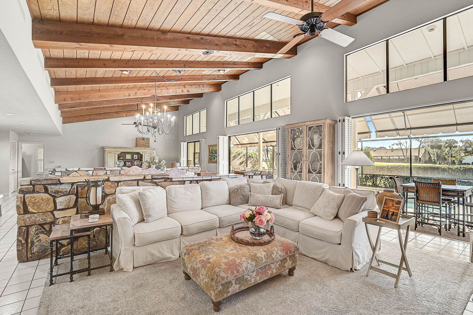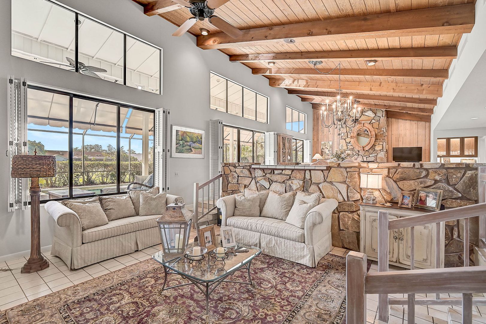 Annual turnkey furnished Want to live in a very spacious light filled, LARGE HOME, with a heated pool, on a golf course, in Country Club of Sarasota? This home is on a very large lot on Prestancia golf course so no close by neighbors. This home was designed with family time and entertaining in mind. The living room, dining room and den are open planned and filled with sunlight from sliding glass doors and clerestory windows and the ceiling is wooden and beamed and open to the heated pool with screened in lanai. The living room is sunken and the attached dining room overlooks the pool and golf course. The attached den has a rustic rock clad fireplace. The kitchen has solid wooden cabinetry, double oven, butlers pantry with bar frig and eat in area. The bedrooms are all roomy too with plenty of closet space. Sarasota Sports Club, tennis and swim memberships are optional. This home has access to top rated schools, is only 12 minute drive to Siesta Key, and close to shopping, dining, Legacy Trail, and downtown Sarasota with theater, opera and museums. CALL TODAY to make this dream come true.