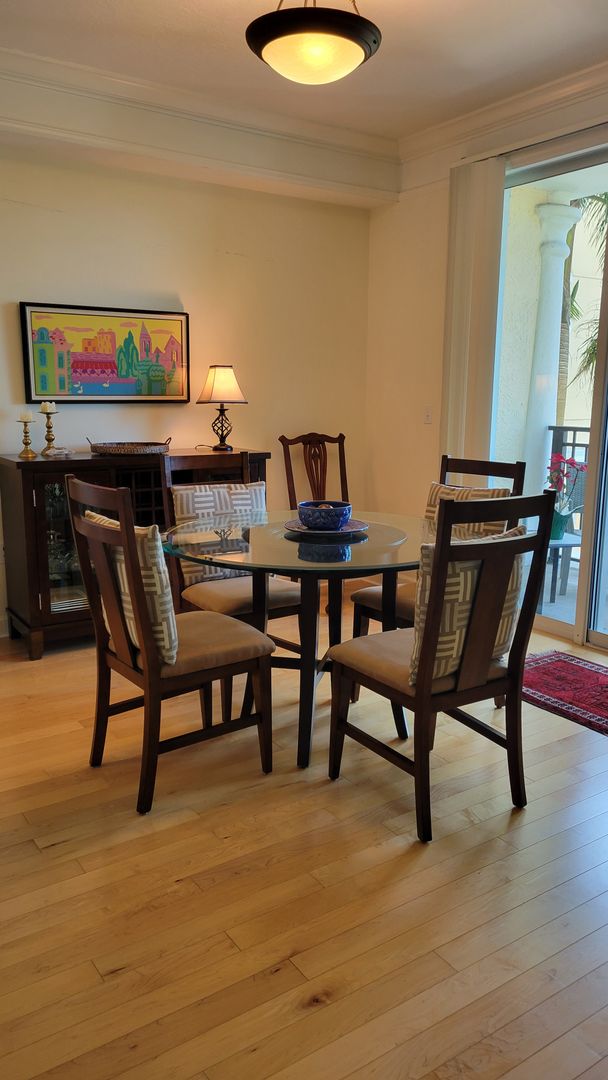This lovely one bedroom unit is on the 4th floor with western view (Sarasota Bay). There is also a den with spacious seating. The kitchen is equipped with all appliances including water and ice cube dispenser in refrigerator; new hardwood flooring throughout and new bathroom with step-in tiled shower, and balcony for watching the sunsets. Recreational amenities in this beautiful downtown building include a fitness center with all new equipment; locker rooms and sauna; hot tub at the pool; movie theatre and media room; business center; club and conference rooms; dance or yoga studio; guest suites for visitors at reasonable rates; 24 hour concierge service; community outdoor grill area with tables; secure parking. The area has extensive cultural, dining, shopping experiences all within walking distance and the gulf beaches within a mile or two by car. 3-month minimum. $4200 for season or $2600 off-season. Rented Jan thru March 2026. CALL TODAY TO BOOK TIME FOR YOURSELF!