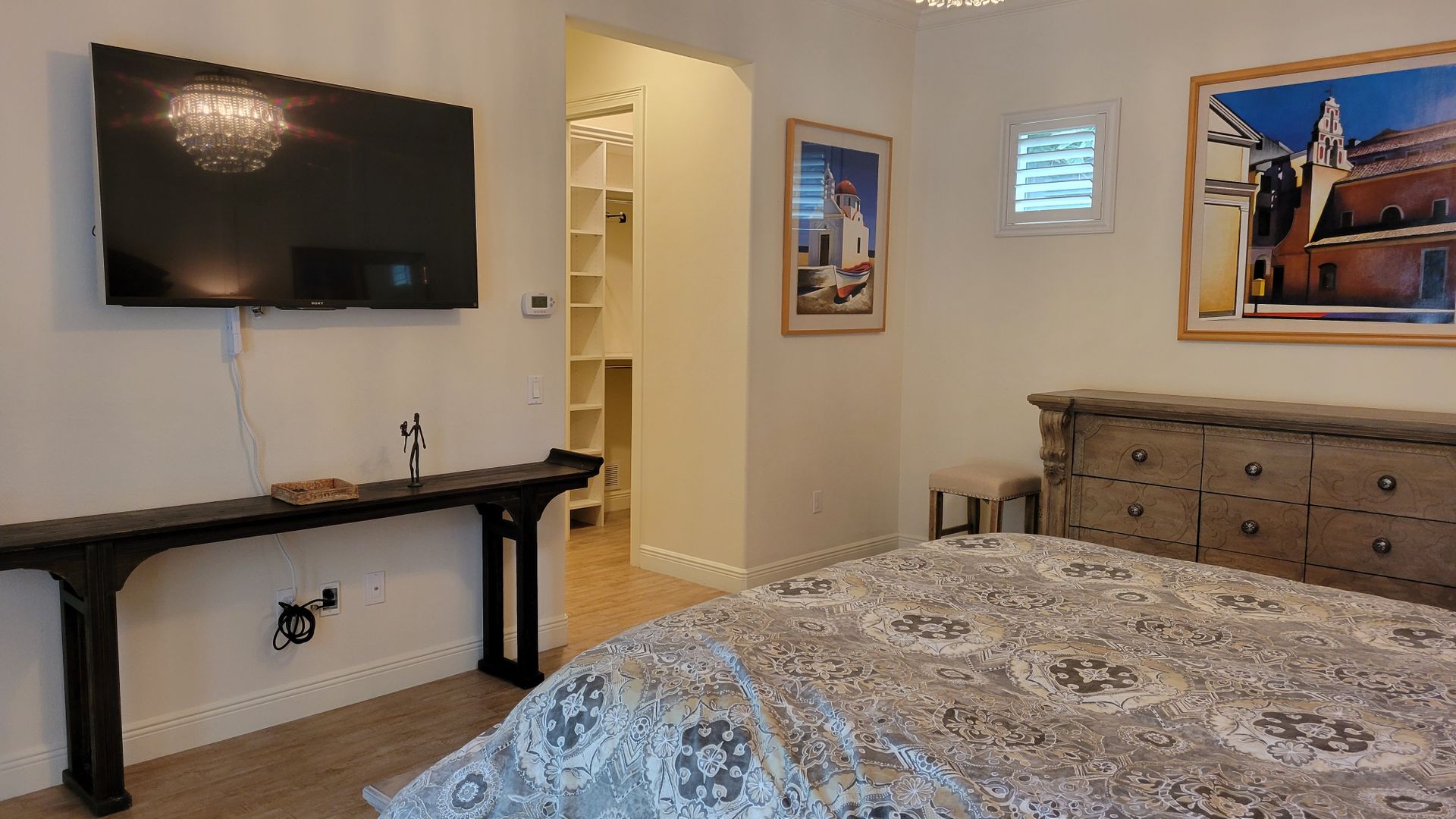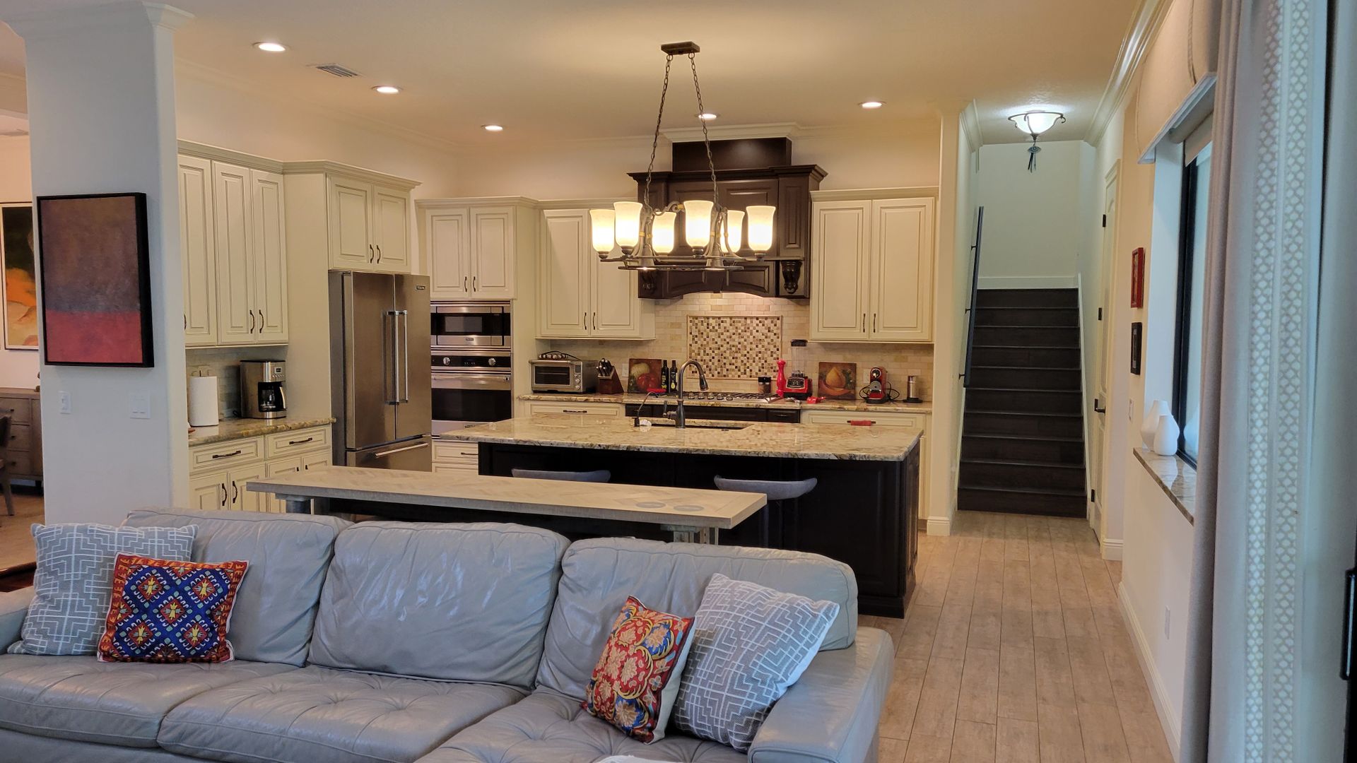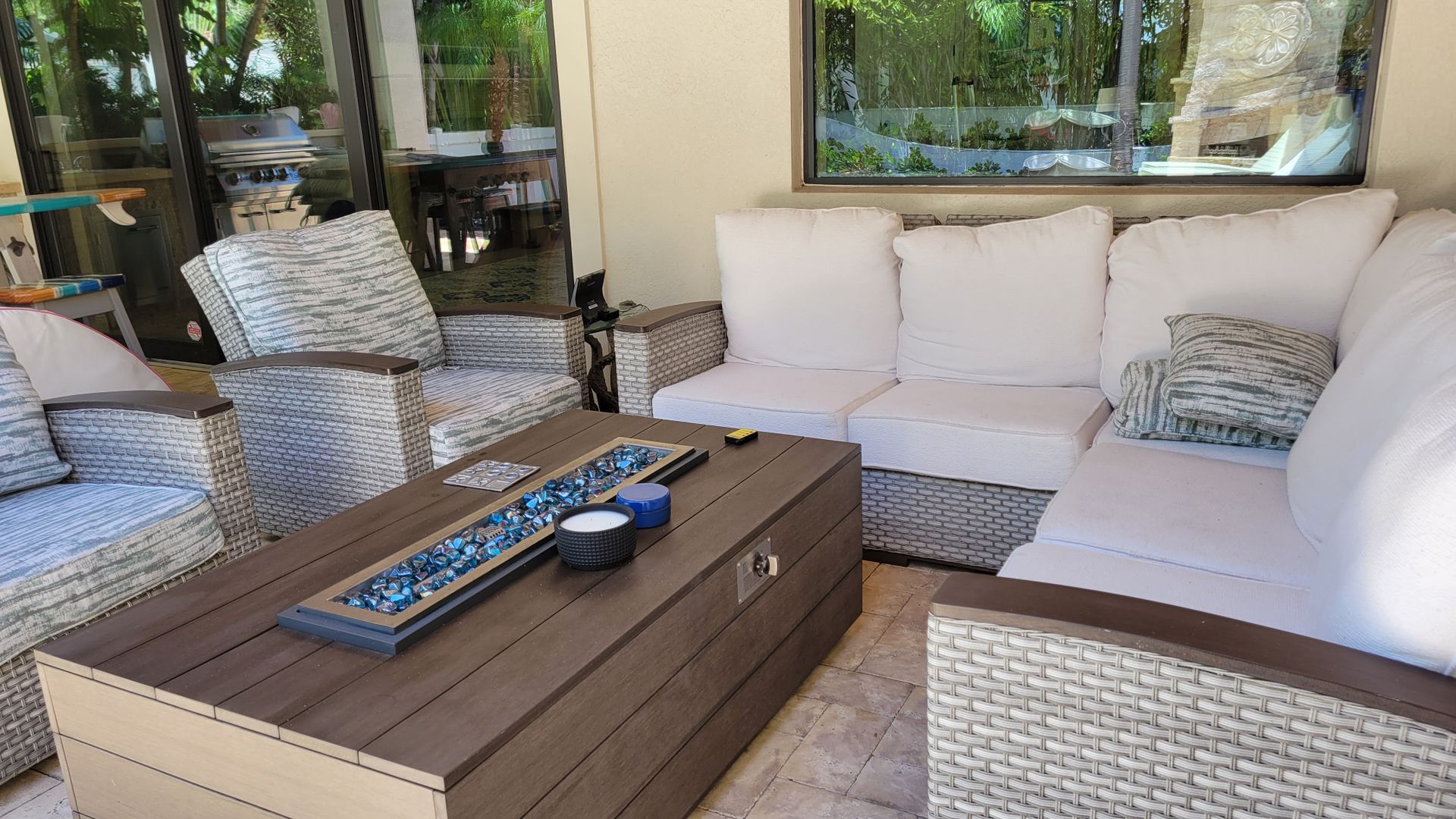 This gated beauty is IMPRESSIVE. It's easy to see why this home is an overall Parade of Homes winner! Five bedrooms and four and one half bathrooms of spectacular architecture filled with natural light. The great room has soaring beamed ceilings, built around a massive fireplace and open to the kitchen for easy family time and entertaining. The kitchen boasts solid wooden cabinetry topped with slab granite counters with breakfast bar on huge island. You'll be pleased with a custom backsplash, professional Viking stainless steel appliances, and a water filtration system with softener. The master bedroom is on the main floor with two large closets, en-suite bathroom with dual vanities, garden tub, water closet and walk in shower. Upstairs you'll find a large loft style family room with big screen TV, three more bedrooms with en-suite bathrooms and a sun deck overlooking the pool and outdoor entertainment space. The flooring is all solid surface tile, and Brazilian wood flooring, so NO CARPETING. The outdoor entertainment area is built around a large pool with fountains, covered seating area with fire pit and summer kitchen with al 'fresco' dining options, fireplace and lush landscaping with privacy fencing. This wonderful home is very close to Siesta Key, the number 1 beach in the country, fine and casual dining, shopping, and downtown Sarasota with the opera, theater, and museums. There is garage parking for one vehicle and an electric car charging station. Now rented thru Jan thru April 18 2026. Available starting August 2025. Off season rent is $10,000 per month + tax. Call today for your next vacation!