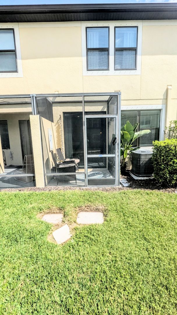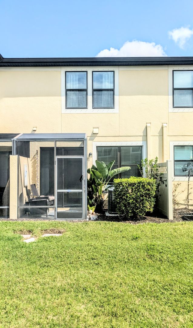 Welcome to Creekwood Townhomes – Gated Community Living / This well-appointed, unfurnished 2-bedroom, 2.5-bath townhome offers a completely open-concept floor plan, perfect for comfortable living and entertaining. The fully equipped kitchen features stainless steel appliances, solid wood cabinetry, and granite countertops that double as a convenient breakfast bar. The main living area is finished with ceramic tile flooring throughout and flows seamlessly from the living and dining spaces to a screened-in lanai, creating an inviting indoor-outdoor living experience. Upstairs, you’ll find a versatile den/loft space with LVP flooring throughout—ideal for a home office, media room, or play area. The primary suite includes two deep built-in closets and an en-suite bathroom with dual vanities and a walk-in shower. The guest bedroom is spacious with a built-in closet and is located near the guest bathroom, which features a tub/shower combination. Additional conveniences include a 1-car garage and an in-unit washer and dryer. Residents enjoy access to a large, heated community pool, making this the perfect place to relax and enjoy the Florida lifestyle. The community is conveniently located near I-75, UTC shopping and dining, and the area’s beautiful beaches, and is situated within a desirable school district. This community is governed by a homeowners association (HOA). The HOA requires lease applicants to complete an application process, which may include application fees, background screening, and common area deposits. Please contact the agent for specific details regarding HOA requirements and associated fees for this property.