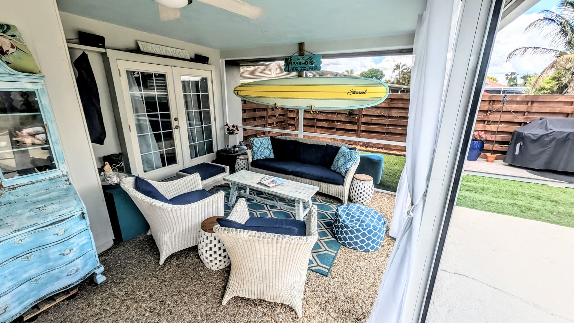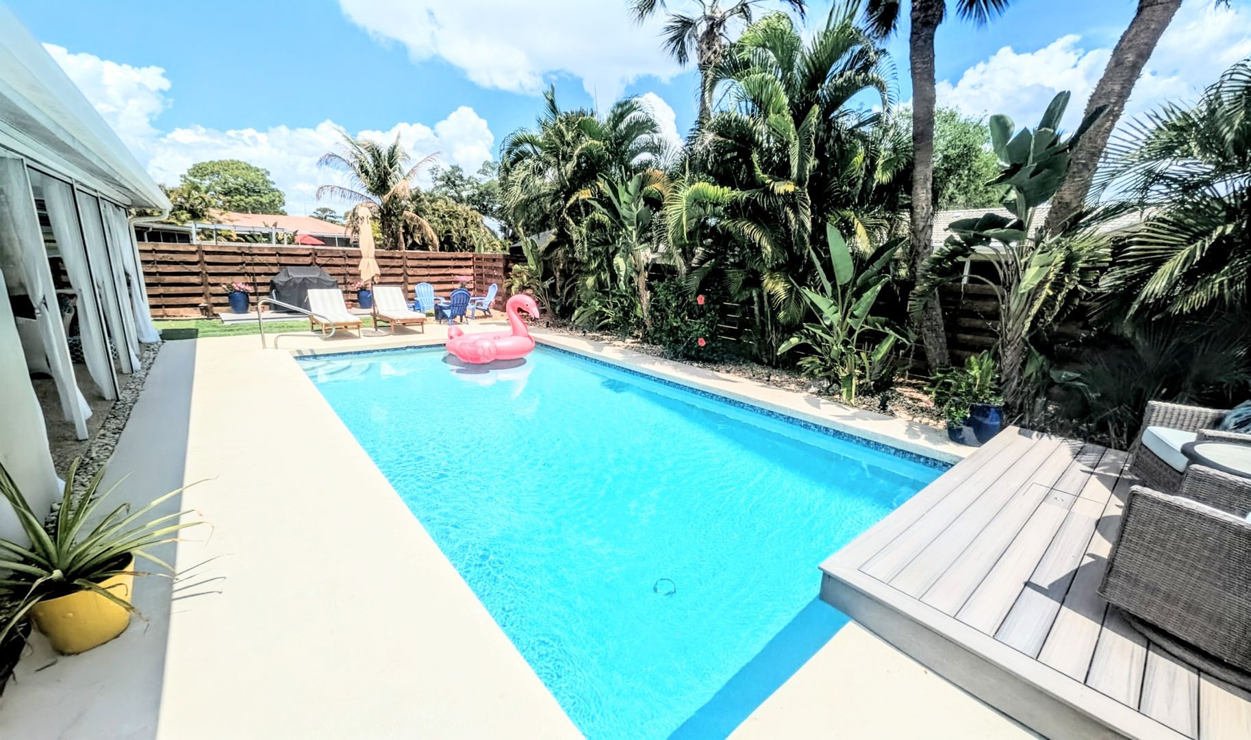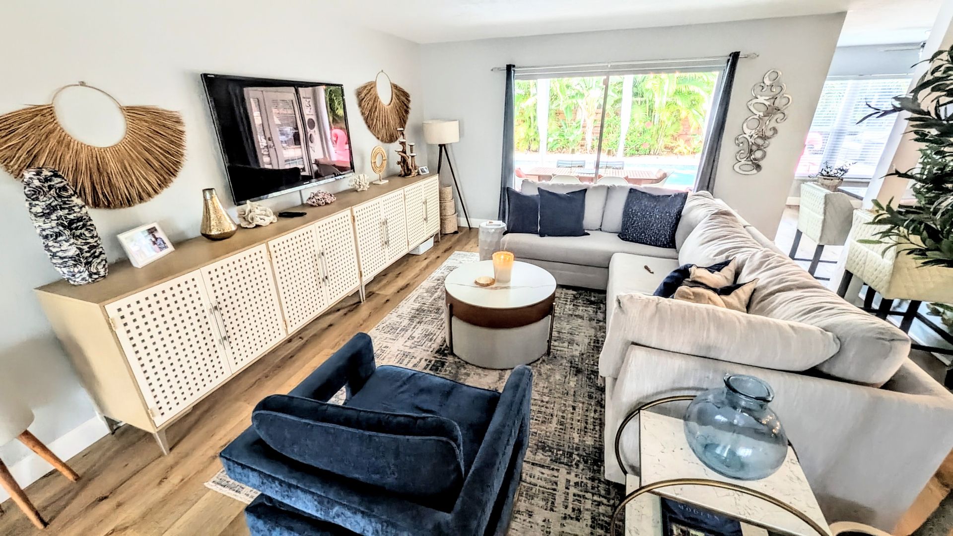 Escape to paradise with this beautifully renovated 3-bedroom, 2-bathroom pool home in Gulf Gate—your perfect off-season retreat. Bathed in natural light from abundant windows, the open floor plan creates an inviting atmosphere ideal for entertaining and family gatherings. The gourmet kitchen boasts solid wood cabinetry, sleek slab granite countertops, an island with a breakfast bar, custom tile backsplash, and stainless steel appliances—perfect for preparing meals or enjoying a casual bite. Stylish and comfortable furniture complements the home’s elegant design. Each of the three bedrooms offers ample space. The master suite features a king bed, a walk-in closet, and an en-suite bathroom. The second bedroom doubles as a home office and includes a full-sized Murphy bed, while the third bedroom offers two twin beds. Step outside to your own private oasis. The fully fenced outdoor area includes a refreshing saltwater pool with a 9-foot deep end, a raised deck for lounging, a fire pit, and an outdoor shower. There is a covered dining area with a motorized retractable screen, ideal for enjoying sunny afternoons or balmy evenings. The outdoor lighting and vibrant gardens create a magical ambiance as the sun sets. Located less than five miles from Siesta Key Beach (voted best beach in USA) and close to downtown Sarasota’s theaters, opera, museums, shopping, and dining, this home offers the perfect balance of relaxation and convenience. This property can be rented from May 1st thru October 31, 2026. CALL TODAY to book your stay in this dream home!
